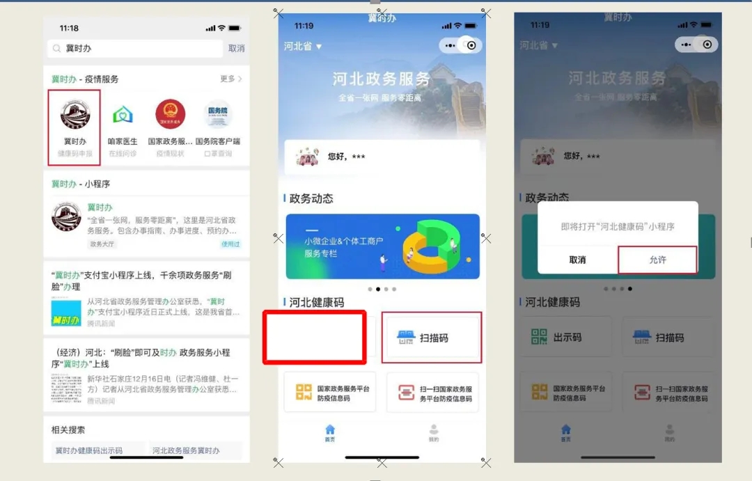 1.微信搜索冀时办或用手机扫公示的二维码,打开冀时办小程序。