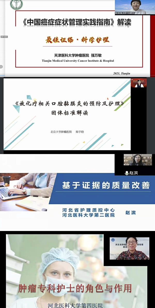 为进一步提高河北省护理人员对肿瘤患者症状管理理论知识和专业技能水平,11月12日,由河北省护理学会主办,我院护理部承办的“河北省肿瘤患者症状管理新进展培训班”在我院召开。本项目是河北省科协2021年度重点活动项目,邀请到了国内、省内知名护理专家围绕肿瘤相关症状的全程管理等热点问题进行专题讲座,线上参会人数达3000余人。