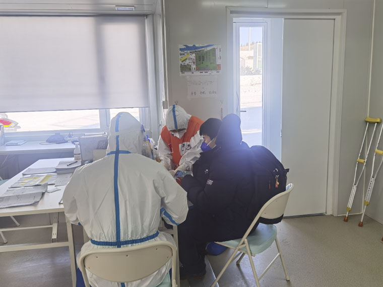 今天是冬残奥会的第二天。我们穿好防护装备,刚刚抵达运动员医疗站,就有一名技术人员因为头痛前来就诊。我们做好登记,详细询问病史,考虑其年龄大、病史等不确定因素,建议转诊到北医三院崇礼院区进一步检查。办好全部手续后由急救120的老师完成转运。队员们配合默契、快速高效,经过多日的磨合,大家对流程已成竹在胸。