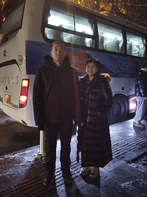 1月23日凌晨,覆盖着“北京2022”白边蓝色字样的大巴车早已在预定地点等候我院冬奥医疗保障队员。05:40,天还没亮,史佳杰、李峥夫妻二人拖着两个大行李箱,快步走来并挥手与送行的家人告别,二人放好行李后,不约而同地将视线转向了家的方向……