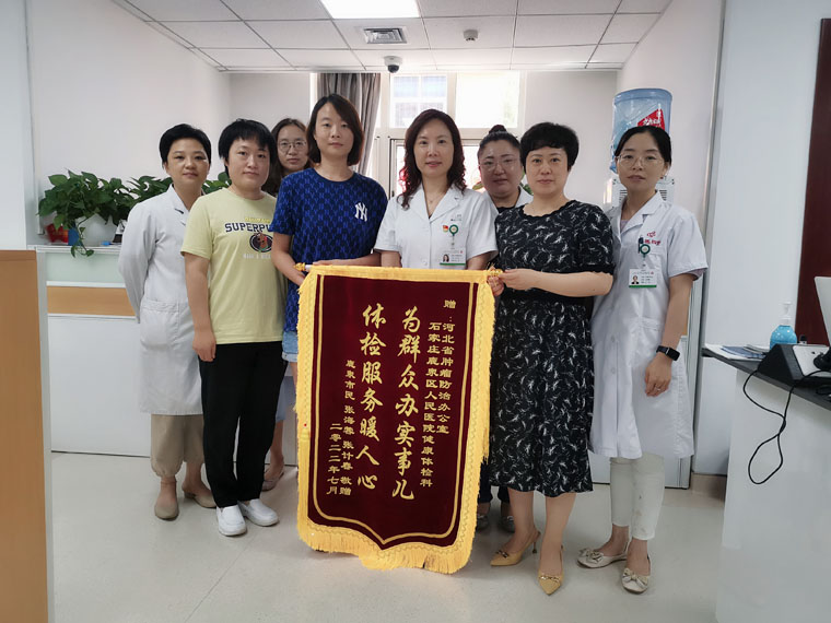鹿泉区的张女士在看到“河北省城市癌症早诊早治项目”的相关宣传报道后,到指定社区参加此项目,通过填写防癌风险评估问卷和三项生物学检测后,被系统评估为乳腺癌的高危人群,相关社区安排张女士到我院进行乳腺超声和钼靶的免费筛查,排除了相关隐患。为了表达对参与该项目的感谢,张女士将写有“为百姓办实事儿,体检服务暖人心”的锦旗送到河北省肿瘤防治办公室。