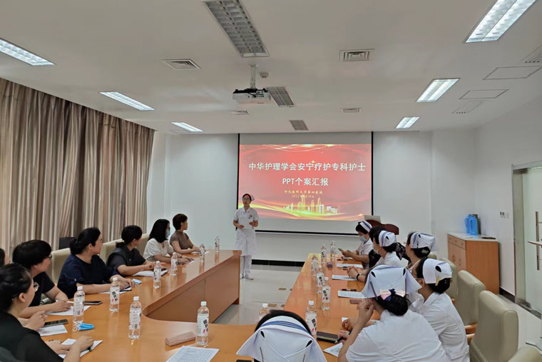 我院先后迎来了7名中华护理学会静疗专科护士学员、7名安宁疗护专科护士学员、3名重症专科护士学员其中安宁疗护学员中有4名省外学员。同期来院的还有河北省专科学员,包括糖尿病专科9人、重症专科28人、介入专科11人、助产专科9人、伤口造口专科8人。