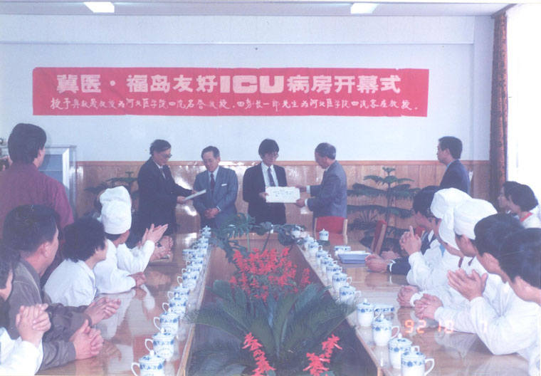 30年前,河北省在重症领域还是一片空白。时任我院院长兼麻醉科主任的张立生教授于1991年3月委派麻醉科胡振杰医生赴日本福岛医科大学附属医院综合性加强医疗科(ICU)进修学习。1992年10月,胡振杰学成回国,在时任我院院长马志学教授、张立生教授以及福岛大学奥秋晟教授、田势长一郎副教授的支持下,正式在我院建立了“中日友好冀医四院ICU”。至此,河北省重症医学的发展实现了零的突破。