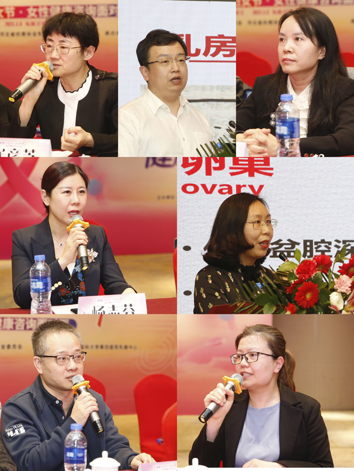 乳腺中心耿翠芝、刘运江、李海平、宋振川、李云涛、马力、回天立、谢艳丽、李赛男协同放疗科张钧、肿瘤内科崔彦芝、肿瘤免疫科刘丽华、妇科李利、产科杨志芬、生殖医学科郭丽娜组成专家团,就乳腺常见病、妇科常见病、生殖医学及健康生活等方面的问题为女性朋友答疑解惑,其中回天立、郭丽娜分别作了“乳腺健康相关知识介绍”“关爱卵巢”为主题的讲座。