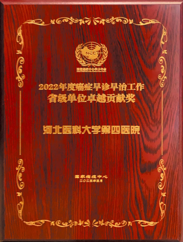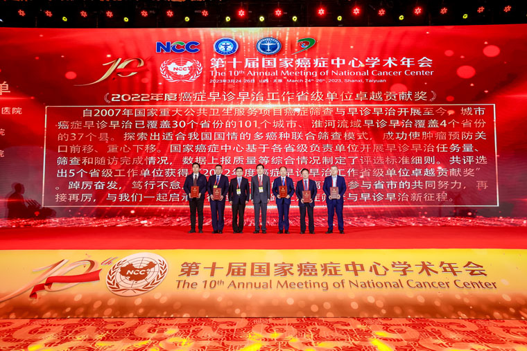 癌症早诊早治是我国癌症防治工作重要抓手,是落实健康中国战略的重要举措。河北省在2012年首批加入国家重大公共卫生服务专项城市癌症早诊早治项目,在各级领导的大力支持下,已经覆盖9个地市,年筛查任务量达到1.7万人次,位居全国省级首位,各项任务完成指标均居全国前列。我省肿瘤防办坚持在扎实的肿瘤登记工作的基础上开展筛查,使得肿瘤登记癌症筛查项目紧密结合,通过定期主动随访和被动随访,更好地掌握参与人群的结果信息。随访数据显示,筛查人群的早期检出比例远高于自然人群。2016-2022年共进行高危人群评估25.2万例,完成临床筛查11.8万例,人群筛查依从率处于全国较高水平;筛查阳性检出率1.28%,早诊率达到66.4%,所有阳性患者得到及时、合理的治疗,得到居民的深度认可。项目开展十年来,成功使得河北省癌症预防关口前移、重心下沉。此次荣获“2022年度癌症早诊早治工作省级单位卓越贡献奖”是国家对我省癌症筛查工作的充分肯定。