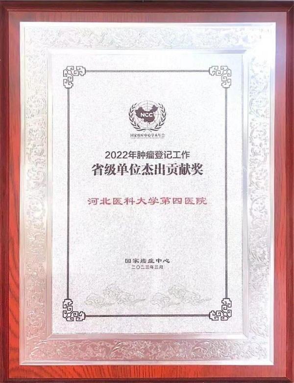 河北省自2008年设立“肿瘤登记随访项目”以来,肿瘤登记工作得到了快速发展。2013年河北省肿瘤登记办公室成立,设在河北省肿瘤防治办公室,完成了由县区登记处到构建全省肿瘤登记体系的转变,承担起全省肿瘤登记技术支持任务。目前,我省11个省辖市、2个省直管市相继建立了市级肿瘤登记中心,健全了我省肿瘤登记系统。2022年,实现了肿瘤登记工作在全省167个县区全覆盖,其中国家级肿瘤登记处共72个区县,覆盖3331万人口。2023年,河北省肿瘤登记质量进一步提升,50个登记处的数据被国家年报收录,超额完成《健康河北行动--癌症防治实施方案(2019-2022)》的相关目标。这些成绩的取得使得我院荣获国家癌症中心颁发的“2022年度肿瘤登记工作省级单位杰出贡献奖”。