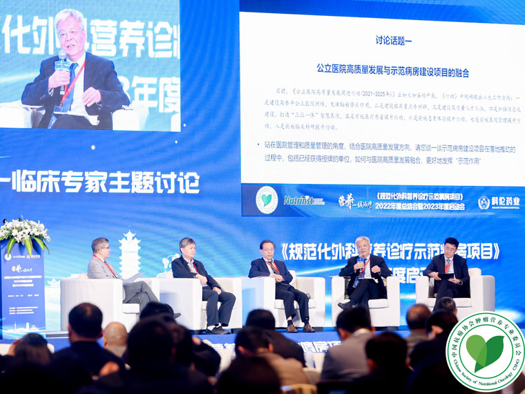 从项目启动到授牌,我院李勇教授作为外科营养专家参与了此次项目建设讨论、培训、评审标准的制定及线上评审工作,并作为此次会议的特邀院管专家,就“公立医院高质量发展与外科营养示范病房建设项目如何融合”及“DRG /DIP推行的大背景下,营养诊疗示范病房建设的意义和方向”进行专题讲座。