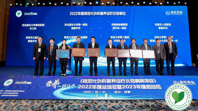 日前,我院外三科获评全国首批“规范化外科营养诊疗示范病房”,授牌仪式在成都举办,吕景霞护士长(左三)代表科室参加授牌。本次获批有利于规范医务人员围术期营养诊疗行为,提升我院营养诊治水平,缩短患者术后康复时间,高质量改善生活。