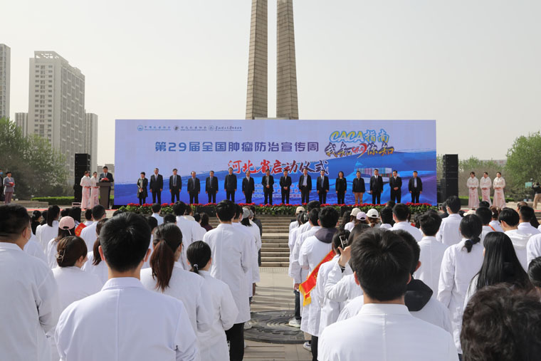 4月15日上午,由河北省抗癌协会主办,华北理工大学附属医院承办的第29届全国肿瘤防治宣传周启动仪式在唐山抗震纪念碑广场进行,来自河北省卫健委、河北省科协、河北省抗癌协会、华北理工大学及其附属医院、市科协、市卫健委及我院的领导和相关人员参加启动仪式。