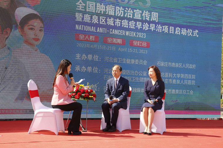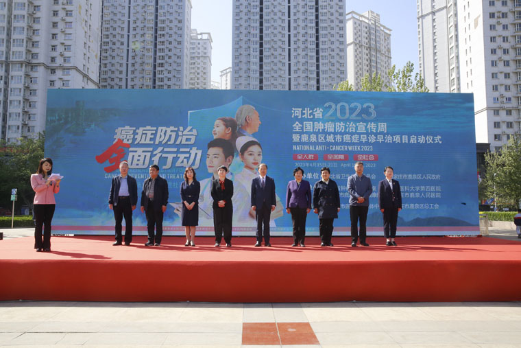 为提高全社会癌症防控意识,营造全民防癌抗癌的良好氛围,4月16日,河北省2023全国肿瘤防治宣传周走进社区暨鹿泉区城市癌症早诊早治项目启动仪式在市政广场举行,主题是“癌症防治、全面行动——全人群、全周期、全社会”。