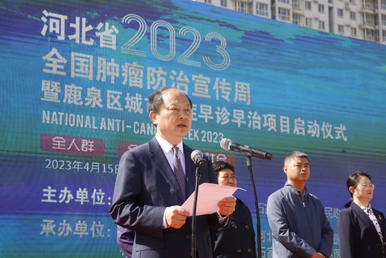 本次活动由河北省卫生健康委员会、石家庄市鹿泉区人民政府主办,河北省肿瘤防治办公室、我院、石家庄市鹿泉区卫生健康局、石家庄市鹿泉区人民医院共同承办,石家庄市鹿泉区融媒体中心、石家庄市鹿泉区总工会协办。我院党委书记、河北省肿瘤防治办公室主任单保恩,鹿泉区人大常委会副主任崔文荣、副区长吕焕举、区政协副主席史聪平,河北省肿瘤防治办公室副主任、河北省城市癌症早诊早治办公室主任贺宇彤,石家庄市鹿泉人民医院党委书记刘士俊等出席。