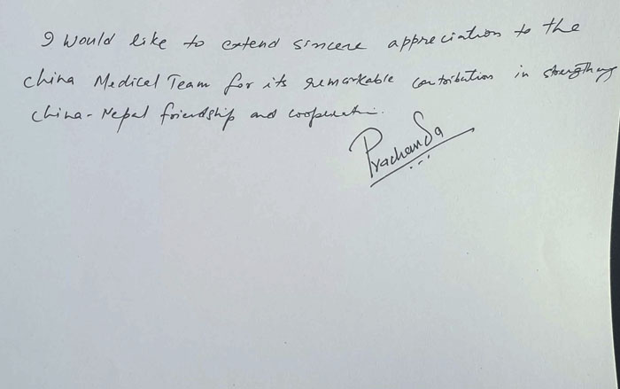 (陈松大使和尼泊尔总理普拉昌达的题词)