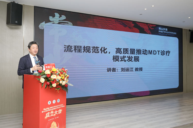 之后,“常山沙龙—肿瘤多学科诊疗学术会议”进行,齐义新教授主持专题环节。刘运江教授带来《流程规范化,高质量推动MDT诊疗模式发展》的专题讲座,他结合自身持续多年在河北各地市推广肿瘤MDT工作的经验和实践,深刻阐述了MDT对各方的帮助,特别分享了我院门诊及住院MDT的运营模式。