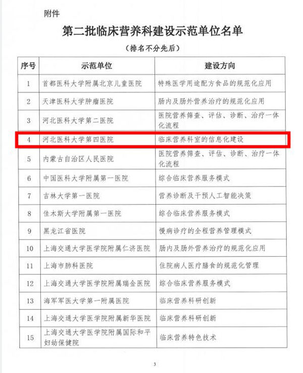 近年来,临床营养科不断提升临床营养诊疗水平,完善营养风险筛查、营养评估以及营养支持治疗流程,为患者疾病恢复提供了有效助力。科室将以此次入选为契机,继续深耕“营养信息化建设”,着力规范住院患者的筛查、评估、诊断、治疗一体化营养诊疗路径,加强区域内临床营养学科交流学习和技术指导,为河北省营养诊疗水平发展继续贡献力量。