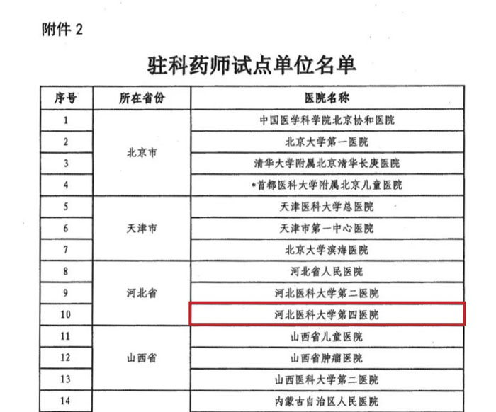 此前,河北省卫生健康委按照国家卫生健康委医政司发布的《关于开展驻科药师工作模式试点单位申报工作的通知》要求,启动省内试点单位遴选工作,通过答辩考核等方式,最终在19家省内医院选出3家医院作为试点,我院位列其中,这次入选也是对我院药学部多年工作的肯定。