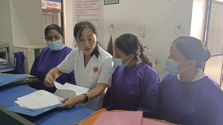 赵桂敏副主任介绍了此次援外的任务安排、受援医院情况和完成的主要工作,重点汇报了《中国河北医科大学第四医院-尼泊尔国B.P.柯伊拉腊纪念肿瘤医院造血干细胞移植建设项目》进展情况和下一步工作计划。两位援外队员表示,一定会铭记医院嘱托,发扬好中国医生的光荣传统,为构建人类卫生健康共同体,为增进尼泊尔人民卫生健康福祉,贡献四院智慧与力量。
