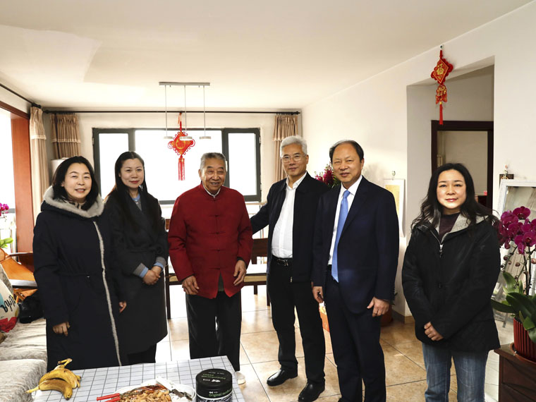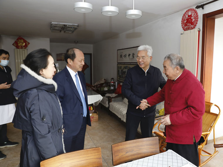 在新春佳节即将到来之际,1月25日,河北医科大学校长王宝山带领相关处室负责人,看望慰问了“全国名中医”、我院中医科刘亚娴教授,我院党委书记单保恩,党委副书记、纪委书记李晓玲陪同,大家向刘亚娴教授致以诚挚的祝福和敬意。