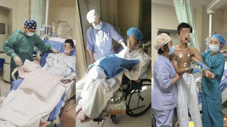 目标导向的早期活动计划、循序渐进的营养支持方案、弹性的心理陪护及探视制度、医护人员实时动态的严密监测、护理人员分班次专人看护、全院多学科的紧密配合,零院感、无谵妄,26个日夜里,四院白衣天使们和患儿及家属一起闯过了肺损伤、感染、多脏器功能衰竭等重重难关。患儿呼吸状态持续好转,呼吸支持条件不断降低,在治疗的第21天成功拔除气管插管,在拔除气管插管的第3天,患儿实现了第一次站立,“孩子真的救回来了!”