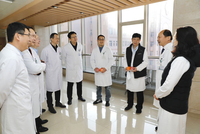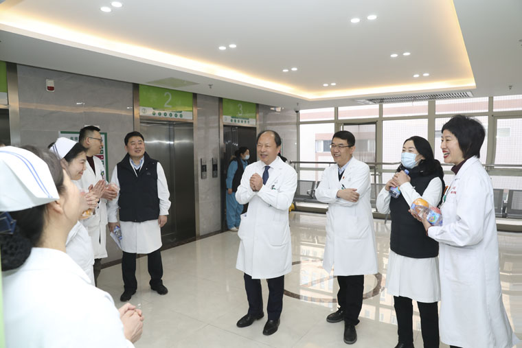 “大家辛苦了”“给大家拜年了”……2月9日,在除夕夜来临之际,我院党政领导单保恩、李晓玲、赵群、何宏涛、彭利、田晓玲、田子强、马景涛带领相关职能部门负责人,在两院区看望慰问坚守岗位的广大职工,向奋战在一线、倾心服务患者的医务人员表示衷心感谢,送上诚挚的新春祝福和慰问品。