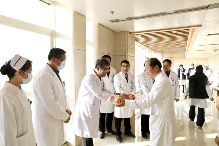 “大家辛苦了!”除夕当日,院领导在两院区慰问坚守岗位职工