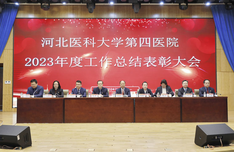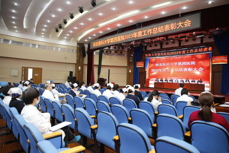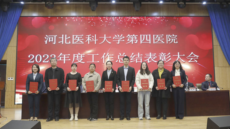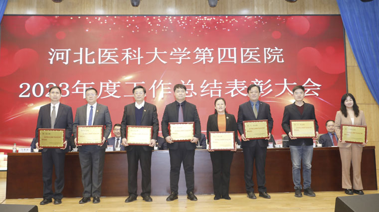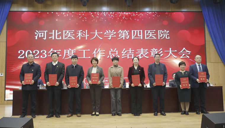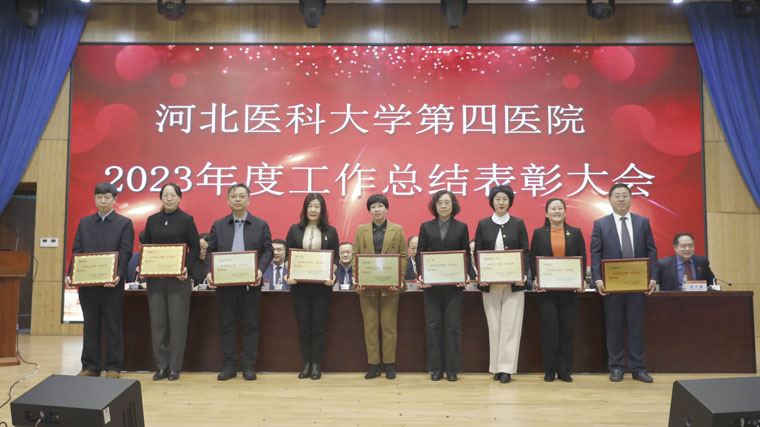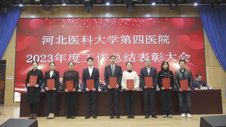 我院党委副书记、纪委书记李晓玲主持会议。副院长赵群宣读了《中共河北医科大学第四医院委员会关于表彰2023年度先进集体、先进个人的决定》,对26个先进科室、88名先进工作者、15个先进党支部、90名优秀共产党员、9名优秀党务工作者进行表彰;总会计师魏迎宣读了2023年度获得市级以上荣誉称号名单。随后,院领导为先进集体代表、先进个人等颁奖。