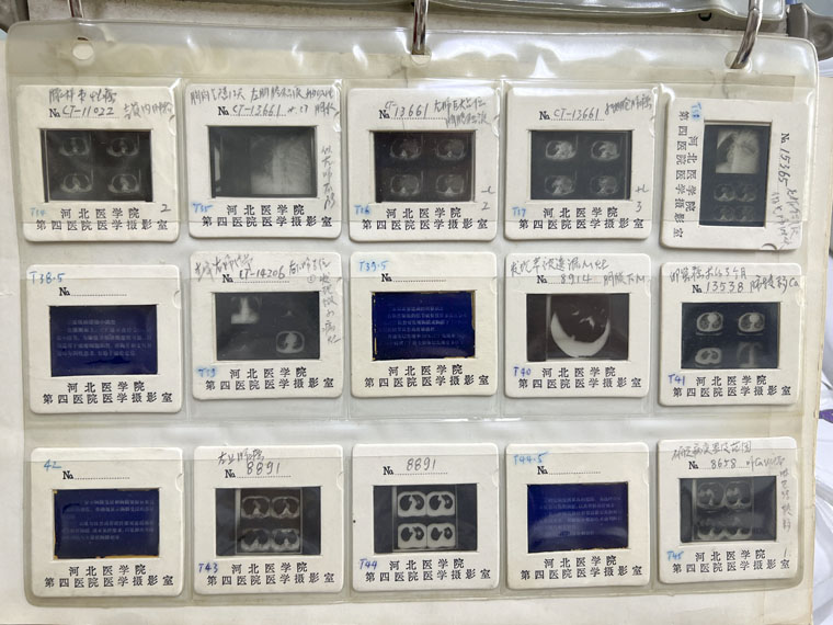 上世纪70年代,放射诊断学教研室的老教授们引入教学幻灯片,极大丰富了教学影像资料,提高了教学水平。每一张幻灯片都凝聚了时任老师们的心血,他们精心选图、认真摄影、制作幻灯,为学生提供了直观、生动的学习材料,打造场景化教学,有力提高了教学的实效性和学生的学习兴趣。