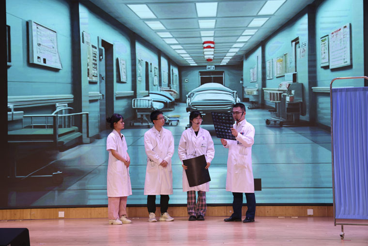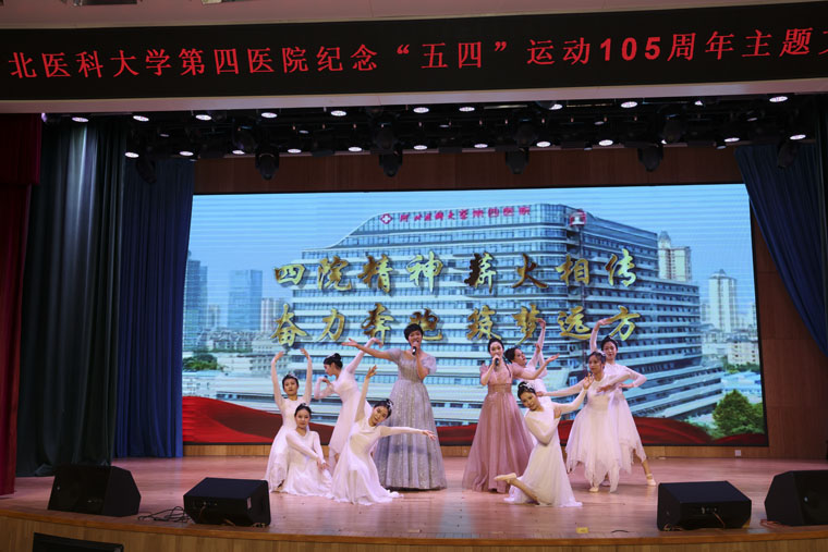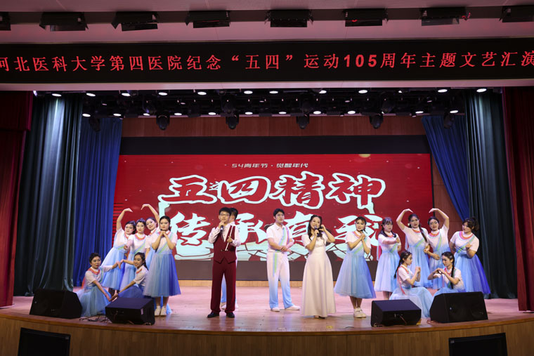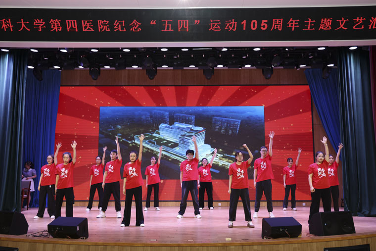 表彰大会后,纪念五四运动105周年主题文艺汇演拉开帷幕。整场演出分为两个篇章,团员青年们自编自导自演,以歌舞、朗诵、情景剧等形式,演绎了现代青年与五四志士的“时空对话”,表达了大家对100多年前为追求“爱国、先进、民主、科学”而献出热血、付出生命的有志青年的敬佩和怀念之情,展现了四院青年不负韶华、昂扬向上的精神风貌,诠释了四院人平凡而伟大的奋斗故事。