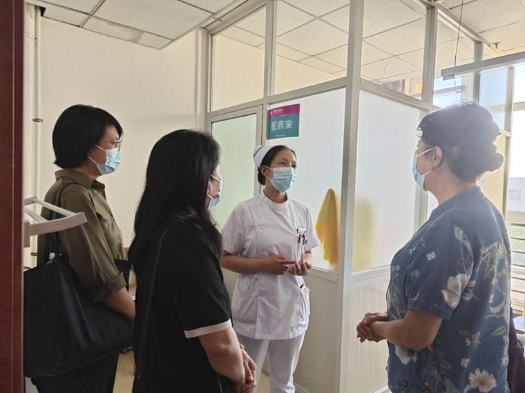 在培训会上,专家团队从PICC的植入、拔除与维护等方面进行授课。我院血液内科护士段亦娇详细讲解了PICC的植入与拔除流程,重点突出了其中的难点和关键环节。乳腺中心护士李月锋对PICC维护流程进行了规范化培训。在讨论答疑环节,康琳主任护师、王建新护士长、段亦娇护士和李月锋护士耐心解答并指导了望都县医院在静脉治疗中遇到的难题。随后,团队专家在望都县肿瘤内科护士长刘丽的引导下开展临床实地调研,并根据望都县的临床现状,提出了静脉通路开展与实施的合理化建议,受到了广泛称赞。