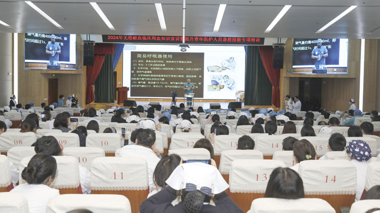 近日,我院医务处、护理部联合开展了青年医护人员临床用血、急救技能培训,邀请了河北省血液中心供血科解雯涛副主任、我院急诊科和重症医学科医护团队进行授课和演示,涵盖无偿献血政策、临床用血知识、心肺复苏术(CPR)、电除颤、抢救给药、设备调配、医护配合等多个方面,东院区同步视频直播。来自临床医技科室的400余名青年医护人员参与培训。