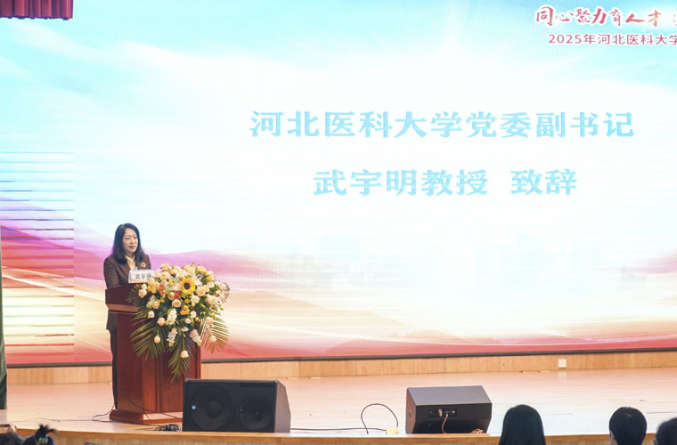 学校党委副书记武宇明在会上代表学校向关心和支持麻醉学专业发展的各位嘉宾表达了诚挚的感谢。她强调,河北医科大学麻醉学系是一支充满情怀、勇于担当、具备能力的教学团队,从老前辈张立生教授创办麻醉学专业教育开始,传承发扬,历经几代人的不懈努力,为国家培养了3000多名合格的麻醉学本科毕业生,遍布全国30多个省、自治区、直辖市,为推进健康河北、健康中国建设提供了坚实的人才支持和医疗保障。特别是去年11月,学校举办的麻醉学专业本科教育30周年庆典活动,进一步扩大了学科的影响力,对于传承麻醉学专业的优良传统,弘扬人民至上、生命至上的崇高精神,守护人民群众的生命健康产生了深远的影响。