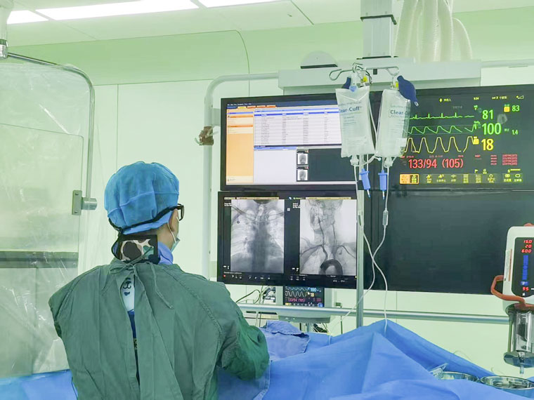 鉴于患者病情危急,接诊医生李晨曦紧急联系介入组李彦青医生启动卒中救治流程,在介入手术室的人员的帮助下,为其实施脑动脉造影术。术中,李彦青发现患者此次发病的责任血管“左侧大脑中动脉”虽存在血流再通,但局部仍为重度狭窄且血栓负荷重,遂决定通过左侧颈内动脉给药以改善局部血供。给药后,复查造影显示狭窄程度明显改善。术后,患者NIHSS评分(神经功能缺损评分)由入院时的8分快速降至3分,言语及右侧肢体活动不利明显改善。一周后出院时,评分进一步降至1分,言语及肢体活动基本恢复正常。