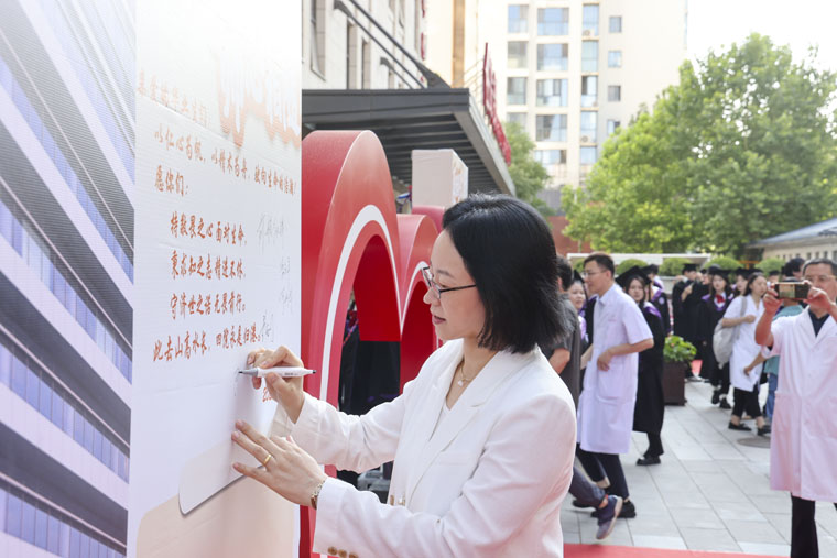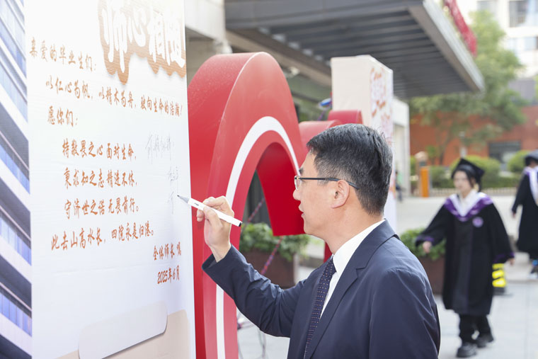 在“医路启程,师心相随”主题留言墙和明信片上,院领导为毕业生写下饱含深情的祝福。“愿你们永葆仁心精术的赤诚,在浩瀚医海中无畏前行;纵使山高水长,四院永远是你们的坚实后盾。”