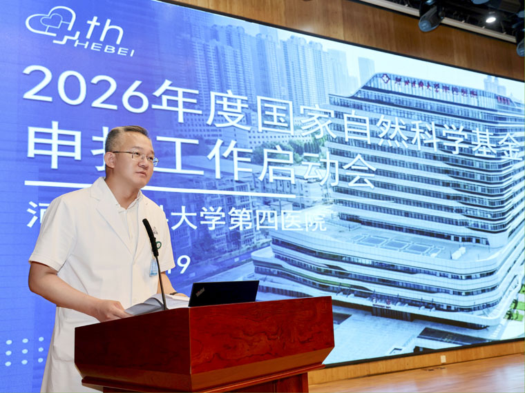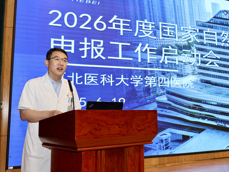 6月19日,我院在本部新医技病房楼报告厅召开了2026年度国家自然科学基金申报工作启动会,全体在院领导、临床医技行政科室负责人及科研骨干参加。会议旨在深入贯彻落实河北医科大学第四次党代会精神,以国家自然科学基金工作为抓手,统一思想、凝聚共识,奋力开创医院科研工作新局面。此前,我院已组织青年科研骨干召开了2026年度国家自然科学基金青年项目申报工作动员会。