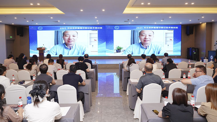 近日,由河北省卫生健康委主办,河北省肿瘤防治办公室和我院承办的2025年河北省肿瘤随访登记技术培训班在石家庄市举办。河北省卫生健康委医疗应急处处长丁瑞、国家癌症中心全国肿瘤登记办公室主任魏文强在线致辞。河北省肿瘤研究所常务副所长、我院副院长赵群教授,河北省肿瘤防治办公室主任单保恩教授出席会议并致辞,河北省肿瘤防治办公室副主任贺宇彤主持开幕式。各市级(含定州、辛集、雄安)卫生健康(局)负责同志,市级(含定州、辛集、雄安)肿瘤登记中心、全省国家级肿瘤登记处项目负责人和技术骨干等200余人参加了线下会议,其他各区县相关工作人员线上参会,线上听会达1.25万人次。