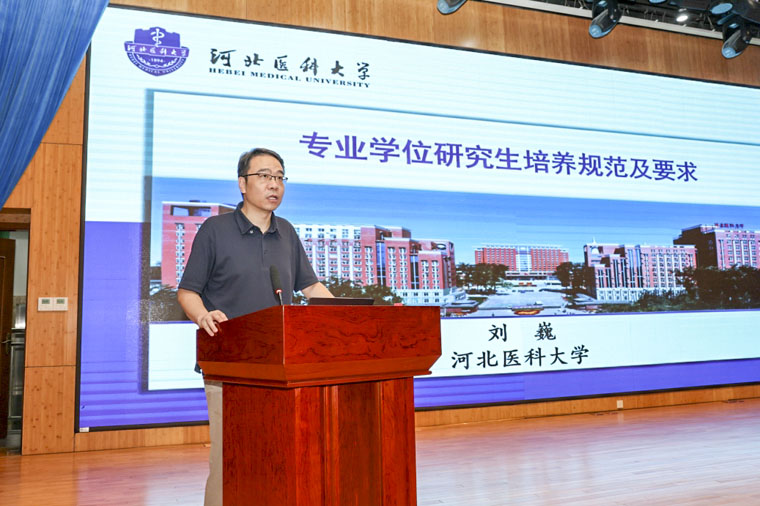 为进一步推动教学制度落实、提升培训质量,切实加强教研室及专业基地的建设与管理,7月31日,我院举行2025年度院级师资培训班开班仪式暨研究生导师培训会,特邀河北医科大学研究生院院长王升、副院长刘巍、许淼老师进行授课。常务副院长何宏涛致辞,副院长田晓玲主持活动,全体研究生导师、教务处人员参加。