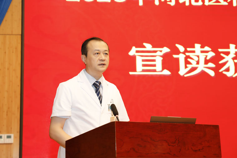 学校党委副书记武宇明代表学校党委,向受到表彰的教师先进集体和个人致以热烈的祝贺。当前是国家“十四五”规划收官之年和“十五五”规划谋篇布局之年、是教育强国建设全面布局、高位推进之年,也是学校全面深化综合改革、全力推进学校高质量发展的关键之年,她对全院教师提出三点希望:一做胸怀“国之大者”的强国之师,传承医学精神,培育卓越医学人才,为教育强国、健康中国建设作出医大贡献;二做矢志躬耕教坛的强教之师,持续学习、创新教学,培养学生解决实际问题的能力,成为学生求知的引路人;三做笃志传承薪火的强校之师,不断提升医院的核心竞争力和社会影响力,加强师资建设,夯实医院与学校长远发展的人才基础。