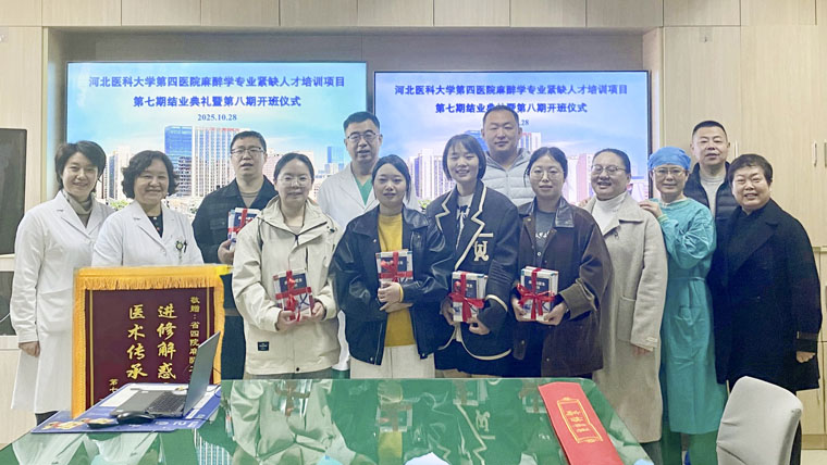 近日,我院举办了麻醉专业紧缺人才培训项目第七期结业典礼暨第八期开班仪式。教务处处长张曼,麻醉科各位主任、带教老师和全体学员参加活动。