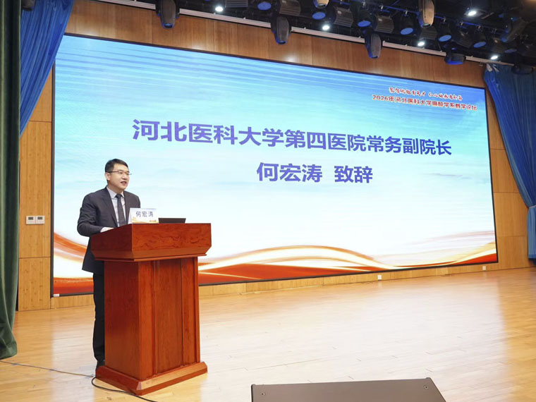 近日,河北医科大学麻醉学系2026年教学论坛暨新年联欢会在我院召开,会议以“聚智赋能育英才,仁心传承谱新篇”为主题,聚焦麻醉学教育教学改革,旨在加强教学经验交流,促进高质量人才培养。学校教务处副处长王恒草、我院常务副院长何宏涛出席会议并致辞。开幕式由学校麻醉学系主任、我院麻醉科贾慧群教授主持。我院教务处以及来自各教学医院麻醉科主任、教学主任、教学干事及教师代表等180余人参加会议。