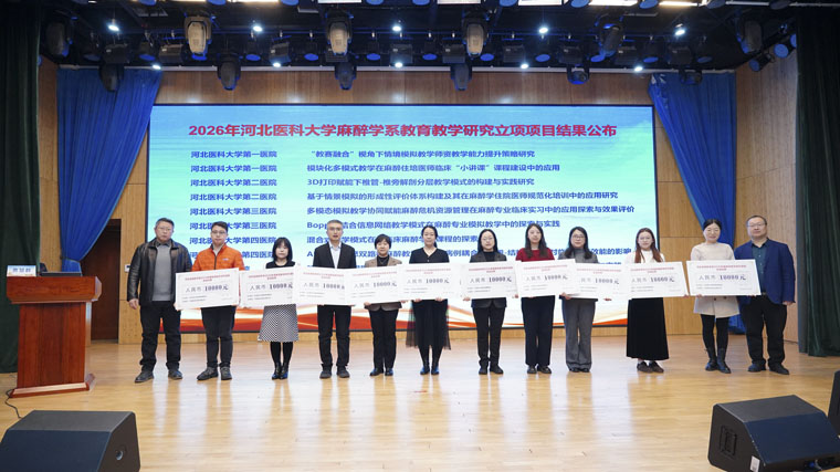 会上举行了麻醉学系2026年度教育教学研究课题立项发布和教学成果获奖教师表彰。本次课题申报积极踊跃,共有21项申报课题,内容涉及课程思政、模拟教学、临床能力培养、人工智能赋能教学等,经专家评审,首批10项课题立项。随后,会议对2025年度获得教学成果奖的教师给予了表彰,其中,我院麻醉科雍芳芳老师团队荣获第二届中国医学教育题库命题创新大赛三等奖、河北医科大学第六届教师教学创新大赛一等奖。