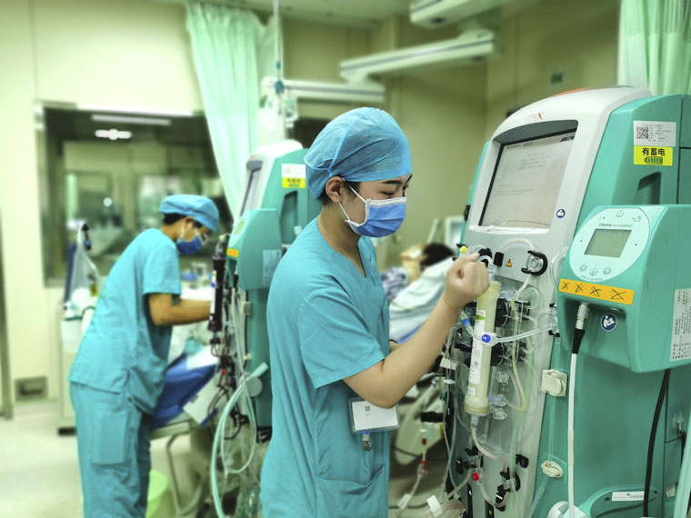 “没有病情的突然变化,只有病情的变化被突然发现”,这是科室全员始终秉承的工作理念。ICU患者病情危重、复杂、变化快,这就需要ICU护士有扎实的理论基础和过硬的技能操作水平。超声评估、CRRT、IABP、ECMO这些高难的技术操作都是ICU护士手里救治患者的利器。每天十三、四个小时的连续工作,需要注意力高度集中,严密观察每一位重症患者的各项生命体征和监测指标。多年来,重症护理质量一直是ICU常抓不懈的重中之重。